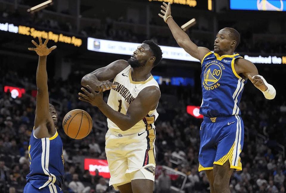 CJ和莺歌中途被交易,鹈鹕接受不了这样的落差和打击,他们下定决心要开始重建,当家球星锡安也被摆上了交易架。4月中旬的时候,NBA知名记者Shamit Dua透露,当时鹈鹕老板跟球队的运营总裁是这样说的:今年夏天必须要交易锡安-威廉姆斯。那么,锡安的未来到底何去何从呢?现在,美媒《Fadeaway World》提议,鹈鹕可以和勇士操作这样一笔3换1的交易,以帮助两支球队共同解决各自的难题,方案具体细节为:勇士送出库明加(先签后换)+穆迪和一个31年的次轮签,得到鹈鹕队的锡安-威廉姆斯。
